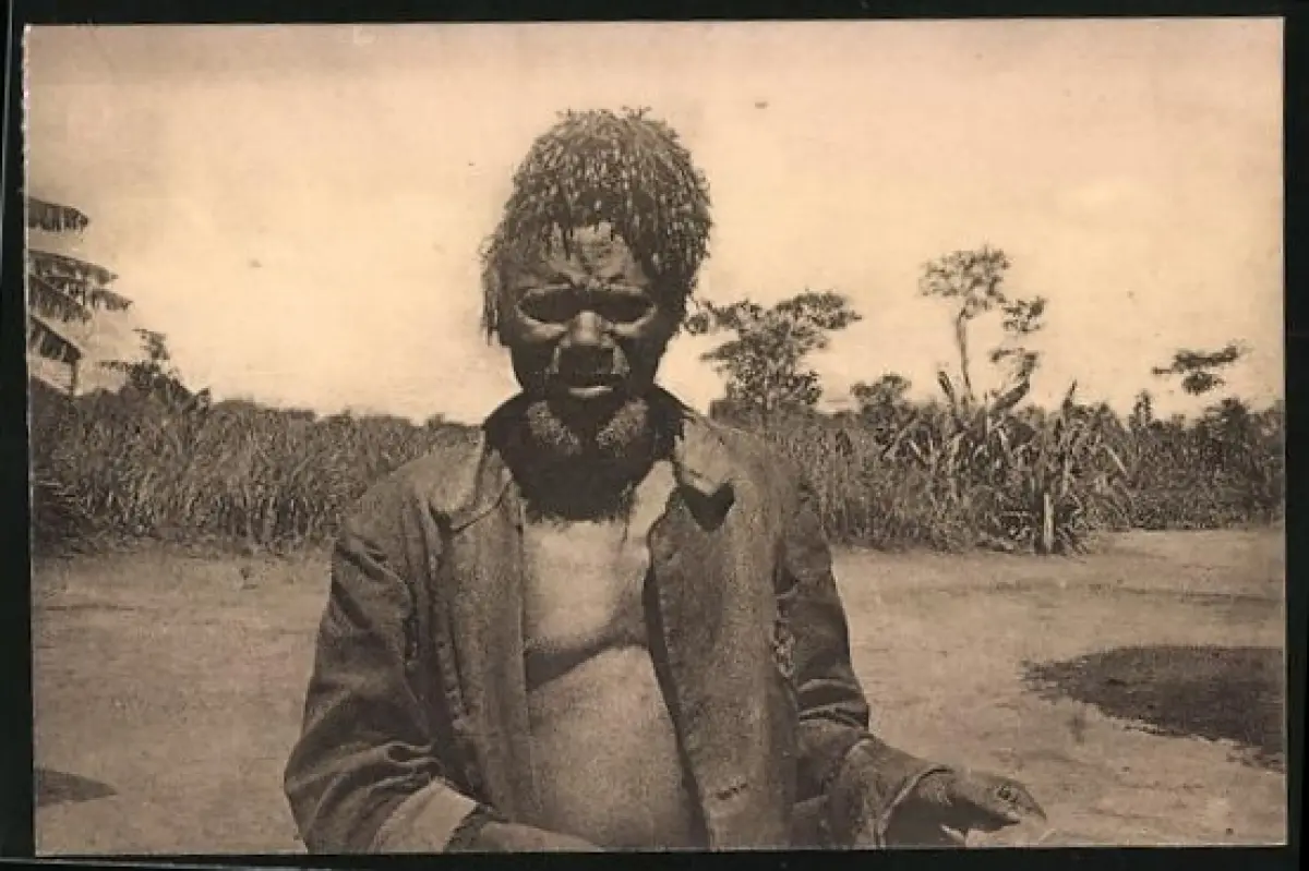 AK Zaire, Vieux Mukongo, en deuil Oud dorpshoofd, in den rouw, Afrikaner mit Bart