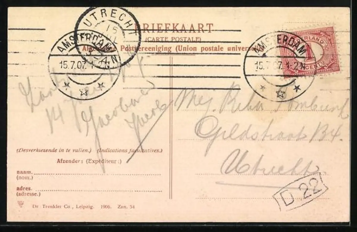 alte Ansichtskarte, gelaufen 1907, Stempelspur, guter Zustand