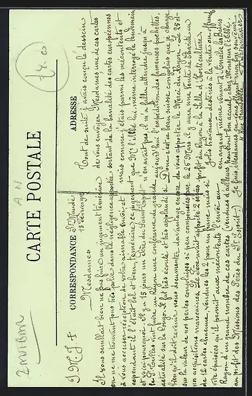 Personenbezogene Daten auf der Rückseite der Karte wurden durch blauen Textmarker unkenntlich gemacht. Die blauen Stellen sind auf die Vorderseite durchgeweicht und wirken sich negativ auf das Postkartenfoto aus