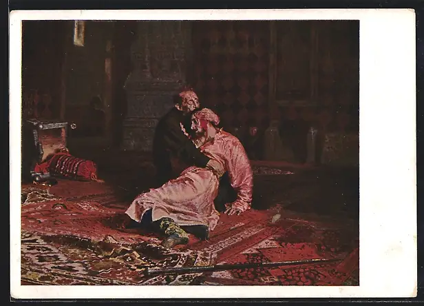 AK Zar Iwan der Schreckliche von Russland mit seinem Sohn