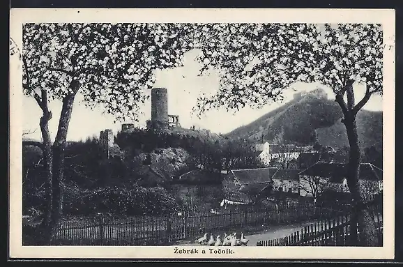 AK Zebràk, Ortsansicht mit Burg Totschnik