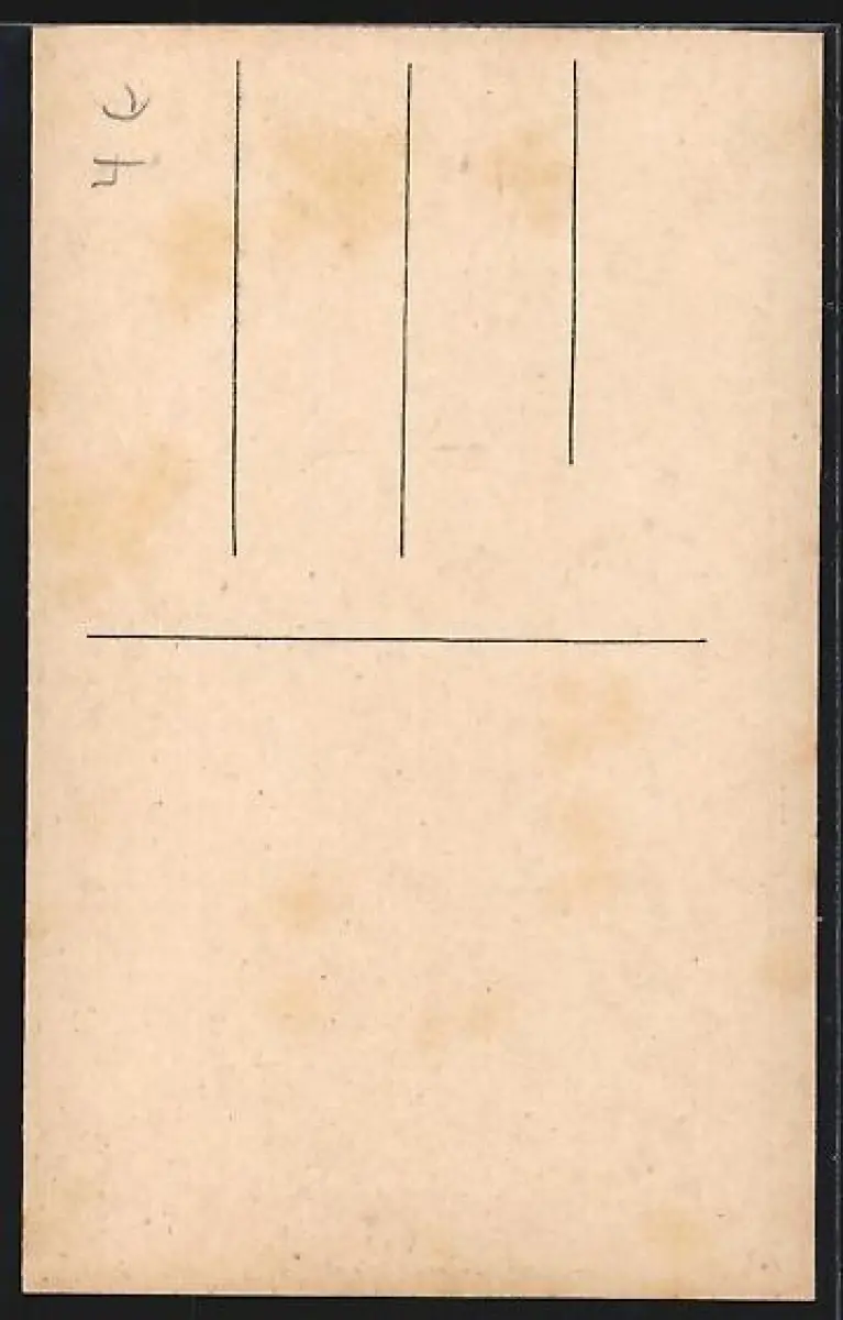 Personenbezogene Daten auf der Rückseite der Karte wurden durch blauen Textmarker unkenntlich gemacht. Die blauen Stellen sind auf die Vorderseite durchgeweicht und wirken sich negativ auf das Postkartenfoto aus