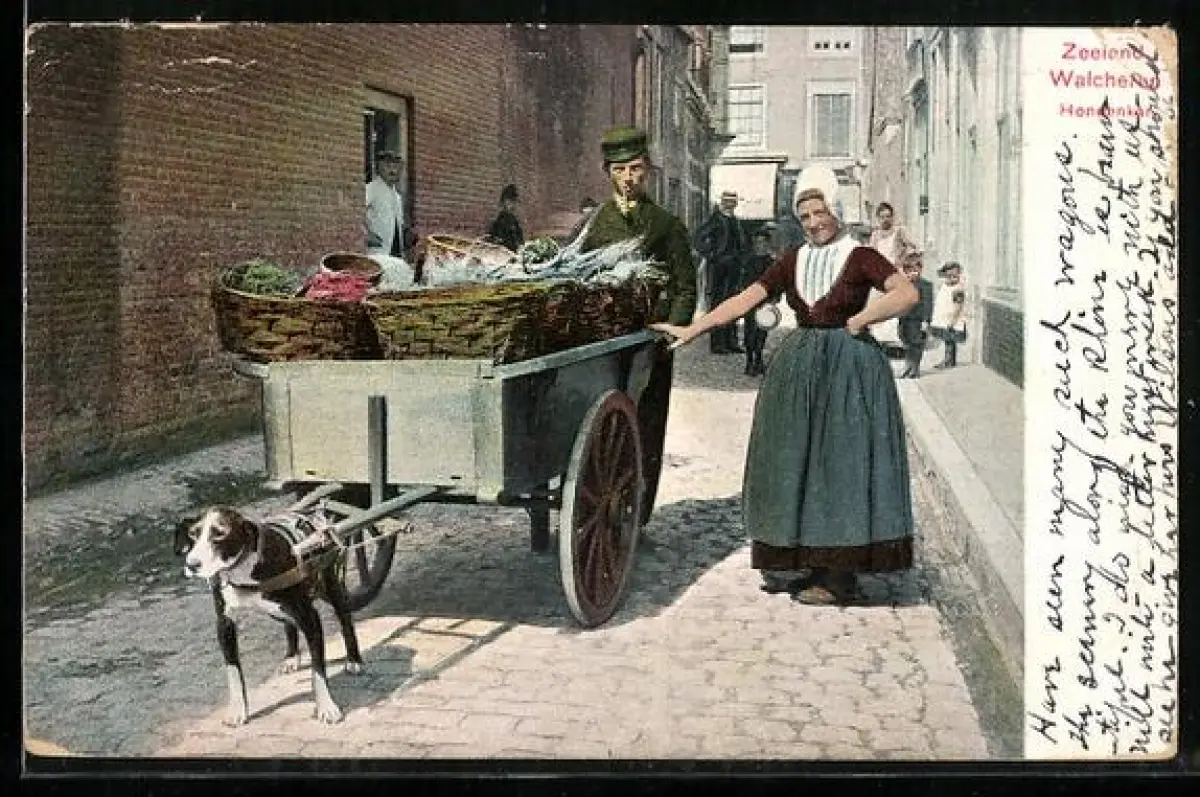 AK Zeeland / Walcheren, Hondenkar, Bauern mit Hundegespann