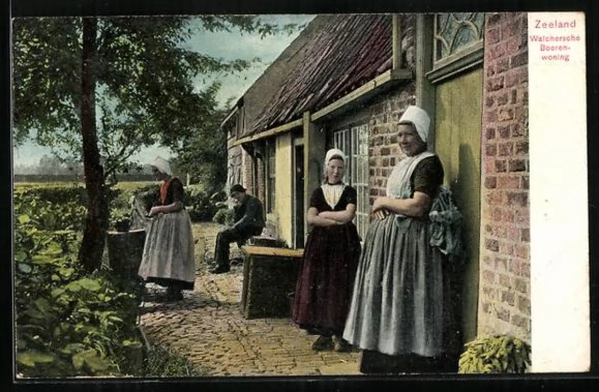 AK Zeeland, Walchersche Boerenwoningm niederländische Bauern in Tracht