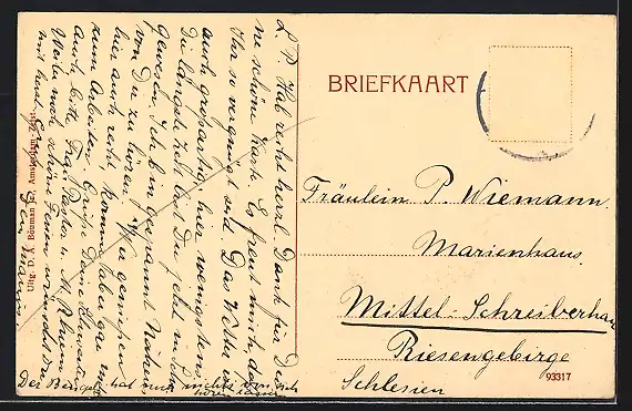 alte Ansichtskarte, gelaufen, Briefmarke entfernt, guter Zustand