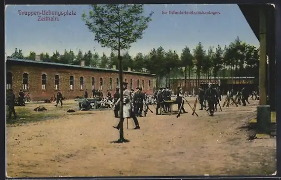 AK Zeithain, Truppen-Übungsplatz, Soldaten im Infanterie-Barackenlager