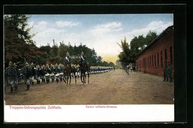 AK Zeithain, Truppenübungsplatz, Parade auf der Kaiser Wilhelm-Strasse