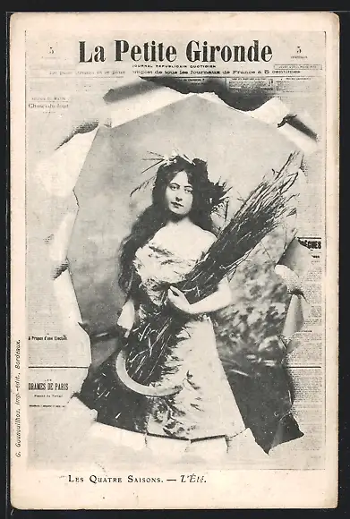 AK Zeitung La Petite Gironde, Hübsche Bäuerin bei der Kornernte
