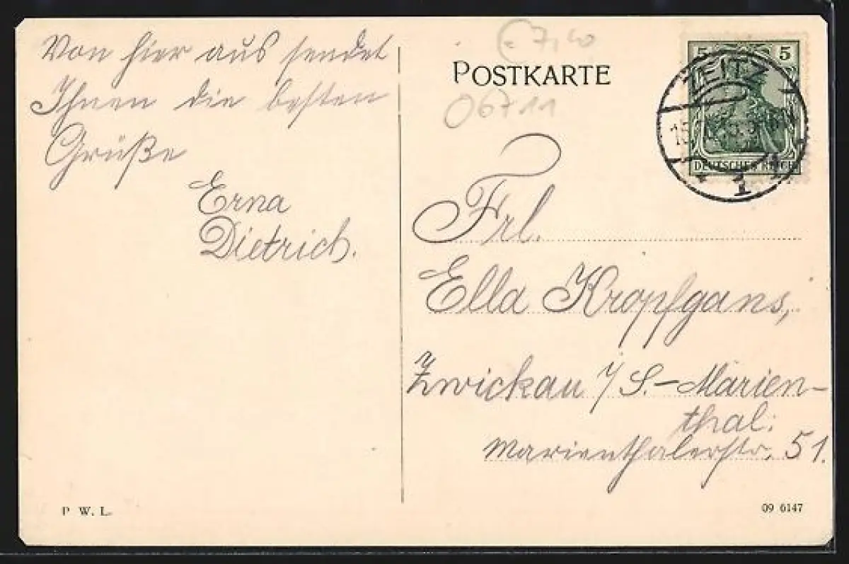 alte Ansichtskarte, gelaufen 1915, Ecken beschnitten