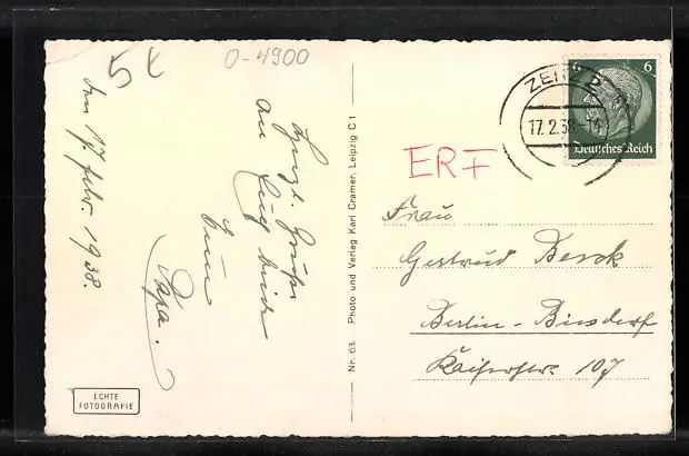 alte Ansichtskarte, gelaufen 1938, Eckknicke oben, guter Zustand
