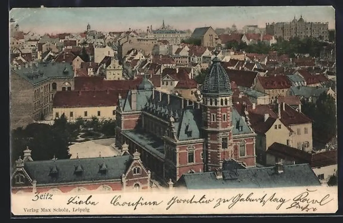 AK Zeitz, Stadtansicht aus der Vogelschau