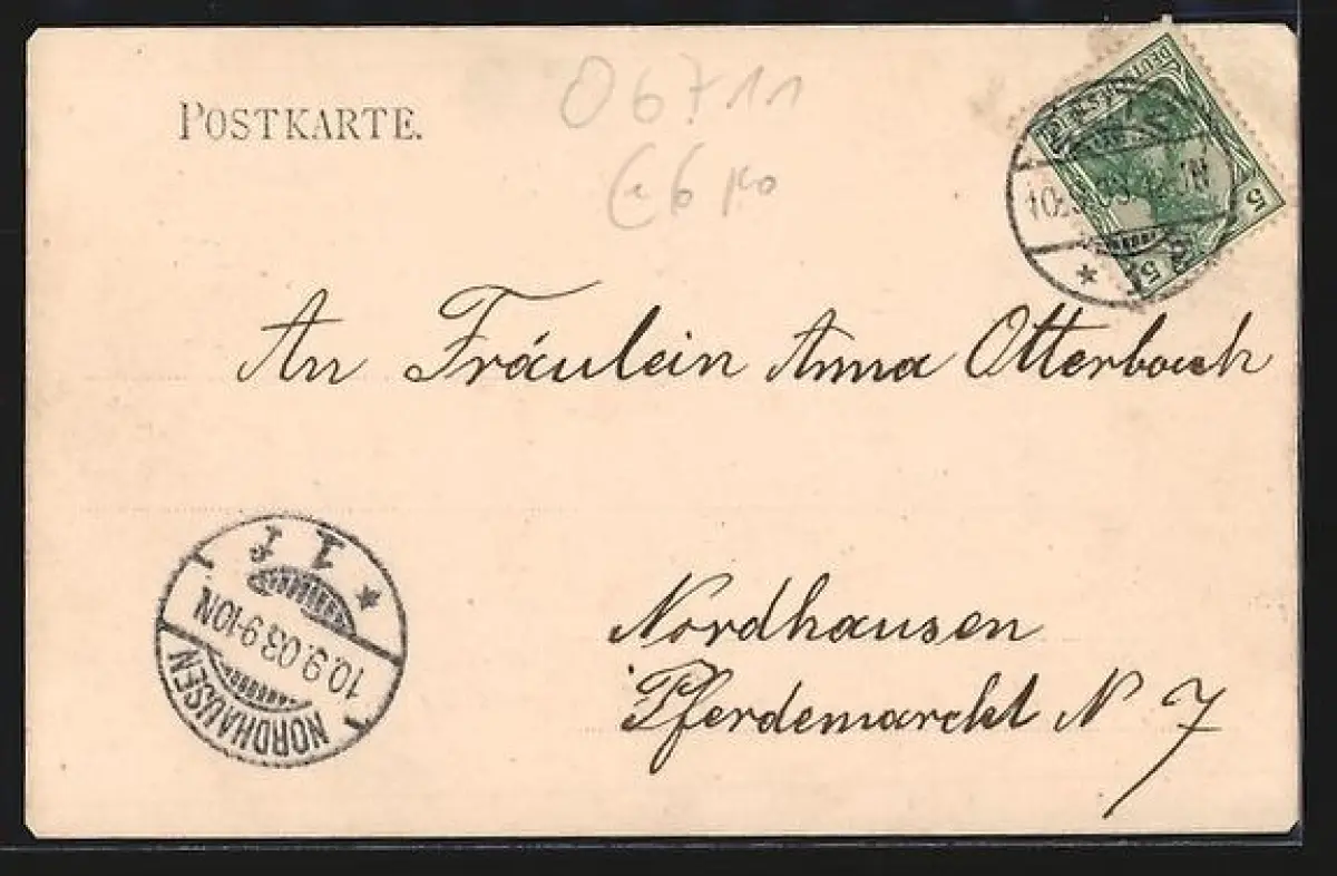 alte Ansichtskarte, gelaufen 1903, Ecken beschnitten