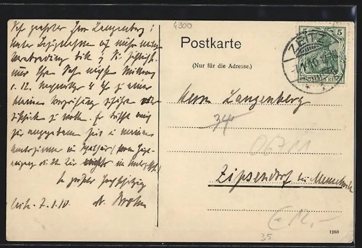 alte Ansichtskarte, gelaufen 1910, Eckknick li. unten und re. oben, guter Zustand