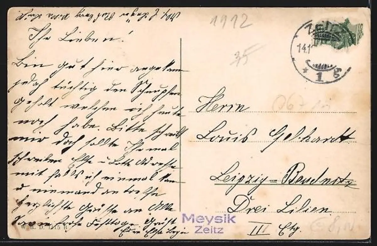 alte Ansichtskarte, gelaufen, Briefmarke entfernt, Stempelspur, guter Zustand