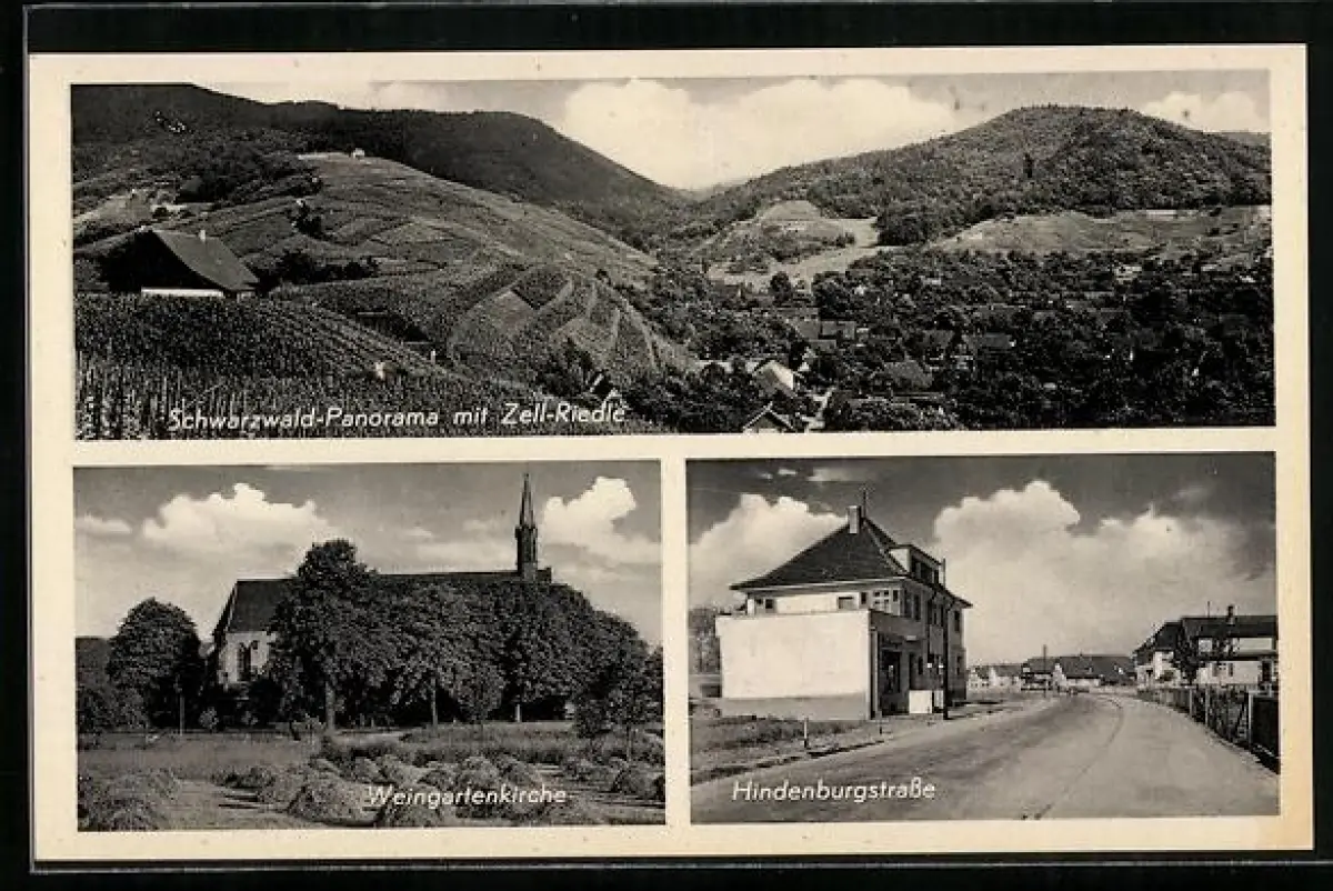 AK Zell-Riedle, Weingartenkirche, Hindenburgstrasse, Blick auf den Ort