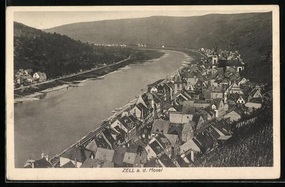 AK Zell a. d. Mosel, Ortsansicht mit Moselpartie