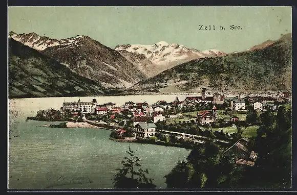 AK Zell am See, Blick auf den Ort mit Seepartie