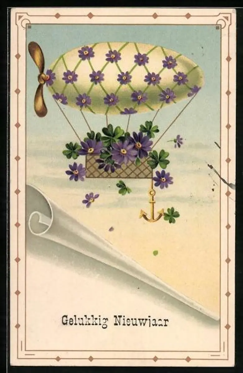 AK Zeppelin mit Blumen, Neujahrsgruss