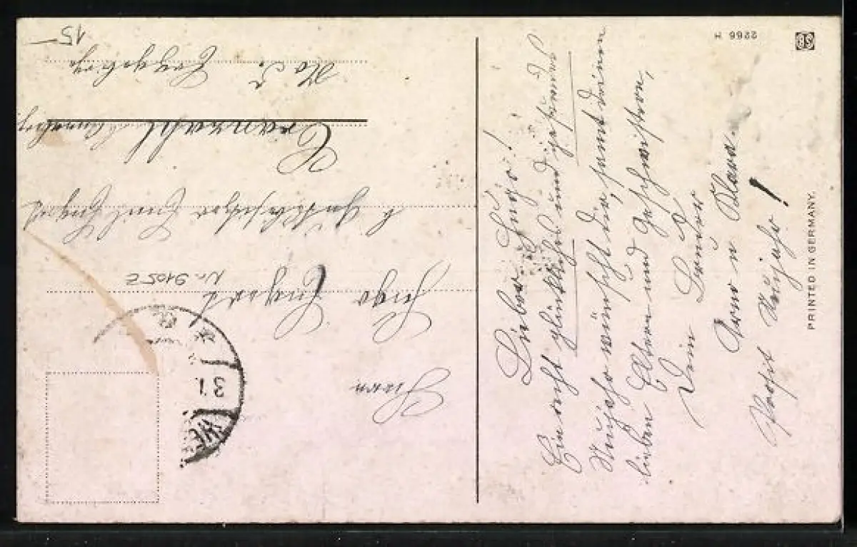 alte Ansichtskarte, gelaufen, Briefmarke entfernt, rückseitig Oberflächenschaden, guter Zustand