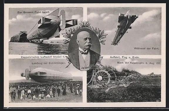 AK Zeppelin`sches Luftschiff Modell 4 fährt aus der Halle, bei der Landung, nach der Feuerkatastrophe 1908