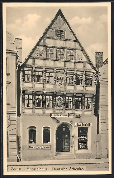 AK Zerbst, Gasthaus Deutsche Schenke, Apostelhaus am Markt