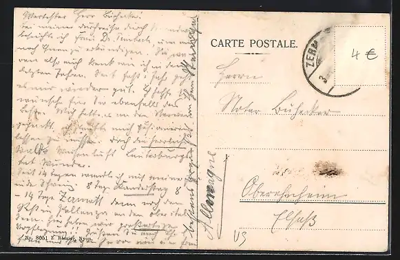 alte Ansichtskarte, gelaufen, Briefmarke entfernt, guter Zustand