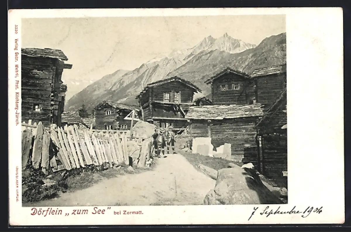 AK Zermatt, Dörflein zum See, Holzhütten