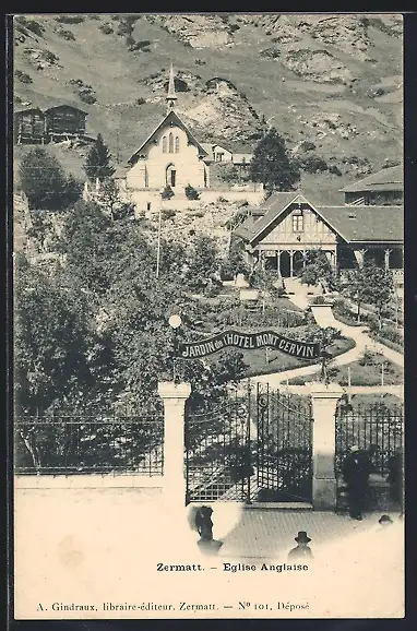 AK Zermatt, Eglise Anglaise und Jardin de L`Hotel Mont Cervin
