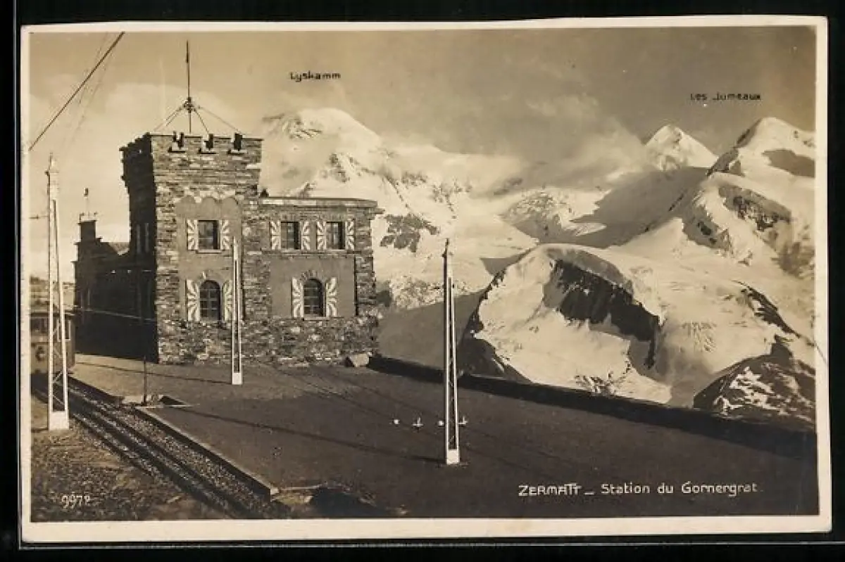 AK Zermatt, Station du Gornergrat mit Lyskamm
