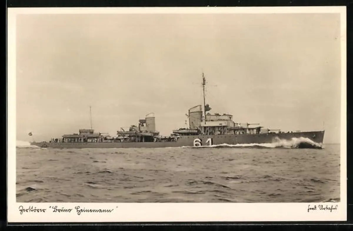 AK Zerstörer Bruno Heinemann der Kriegsmarine in voller Fahrt
