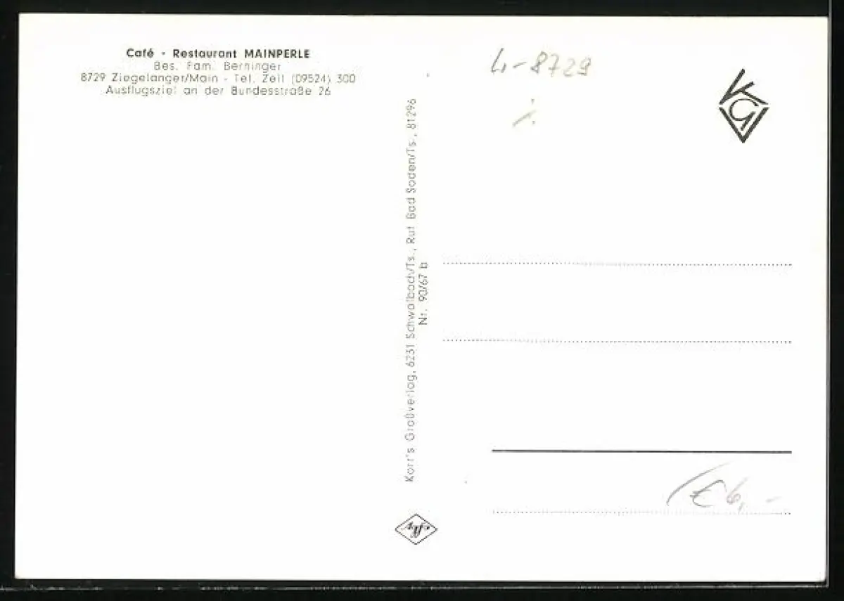 AK Ziegelanger am Main, Café-Restaurant Mainperle, Bes. Fam. Berninger