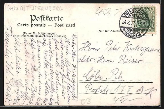alte Ansichtskarte, gelaufen 1912, Eckknick re. unten, Abriebspur li. oben, guter Zustand