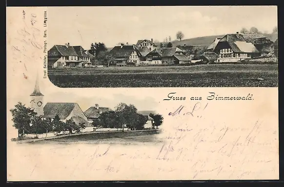 AK Zimmerwald, Ortspartie mit Kirche, Ortspanorama