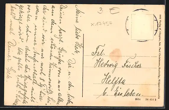 alte Ansichtskarte, gelaufen, Briefmarke entfernt, rückseitig Oberflächenschaden, Stempelspur, guter Zustand