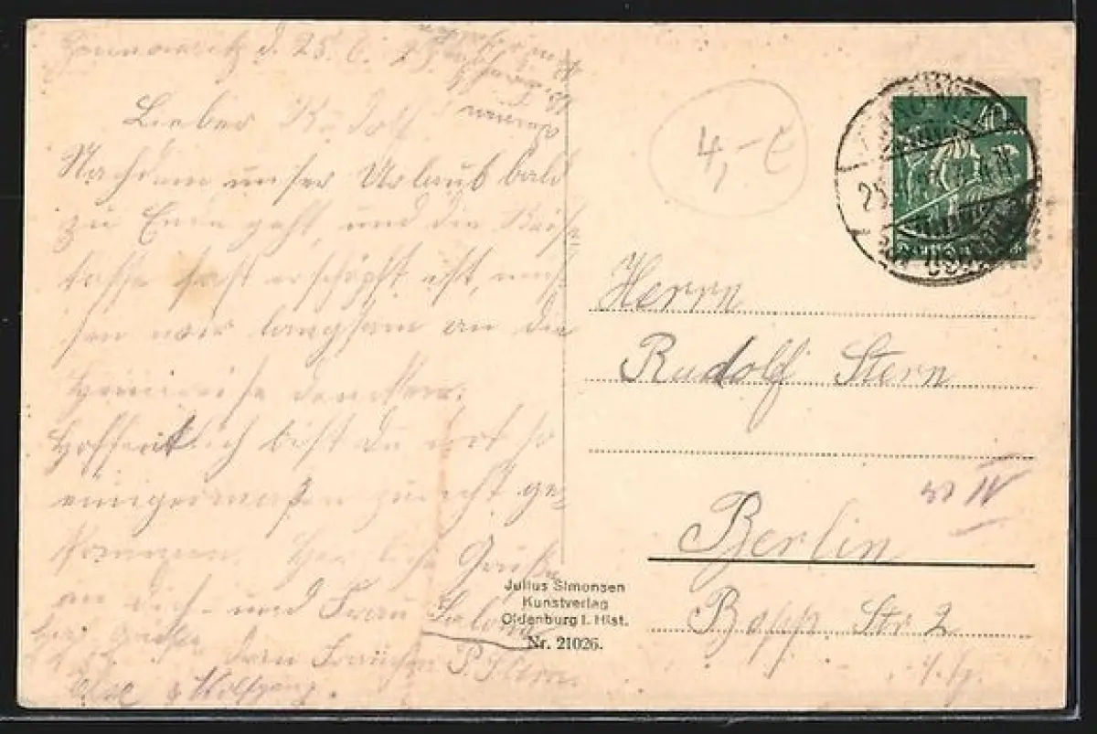 alte Ansichtskarte, gelaufen, Eckknick oben links, guter Zustand
