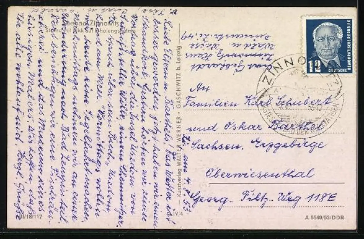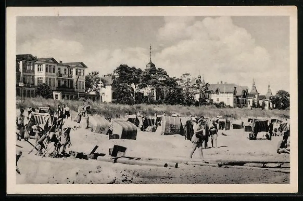 AK Zinnowitz, Strand mit Badegästen u. Erholungsheimen