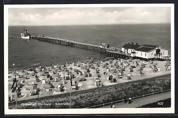 AK Zinnowitz, Strand mit Seebrücke aus der Vogelschau