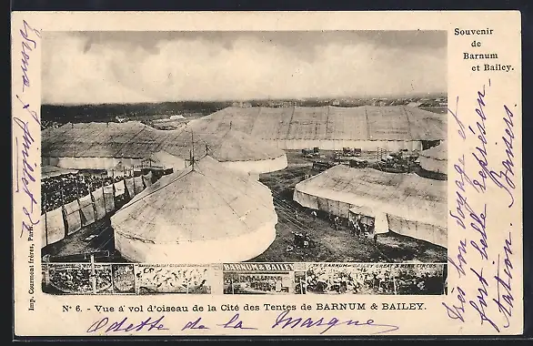 AK Zirkus Barnum & Bailey, Zelte aus der Vogelschau