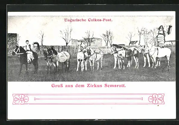 AK Zirkus Semsrott, Dressur mit ungarischen Czikos-Postpferden