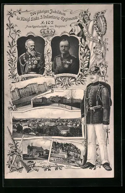 AK Zittau, 200 jähriges Jubiläum d. Königl. Sächs. 3. Infanterie-Regiments 102 1909