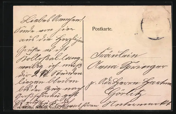 alte Ansichtskarte, gelaufen, Briefmarke entfernt, Eckknick oben links, guter Zustand