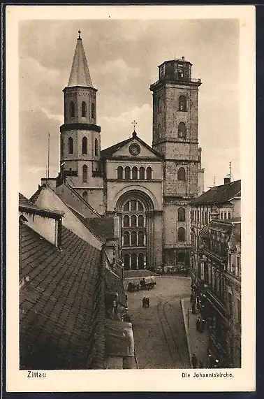 AK Zittau, Die Johanniskirche aus der Vogelschau