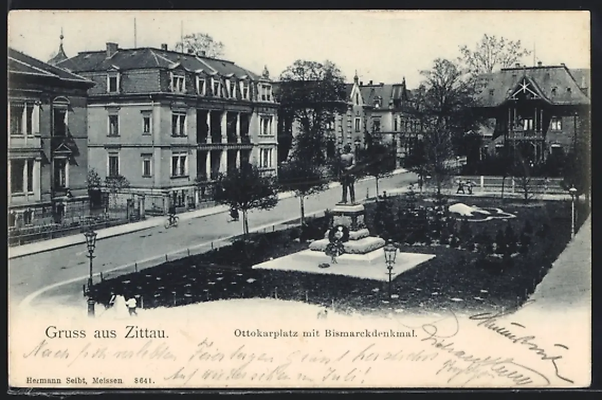 AK Zittau, Ottokarplatz mit Bismarckdenkmal