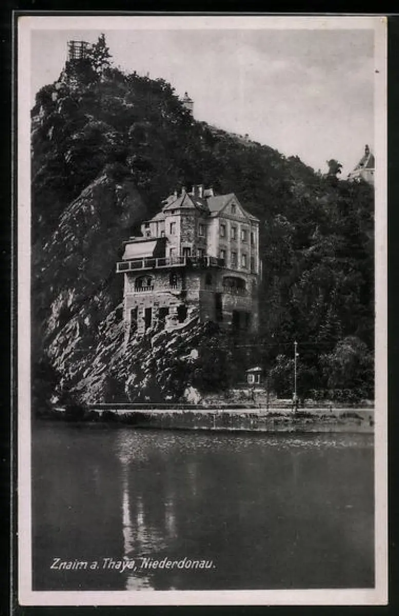 AK Znaim, Gebäude an einer Klippe, Eligsfelsen