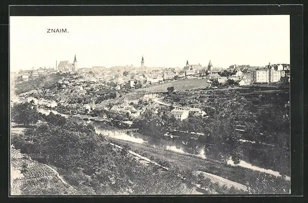 AK Znaim, Gesamtansicht des Ortes von Anhöhe