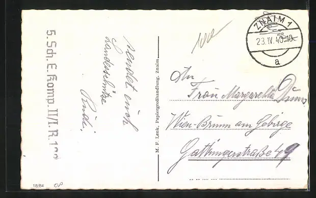 alte Ansichtskarte, gelaufen 1940 als Feldpost, guter Zustand