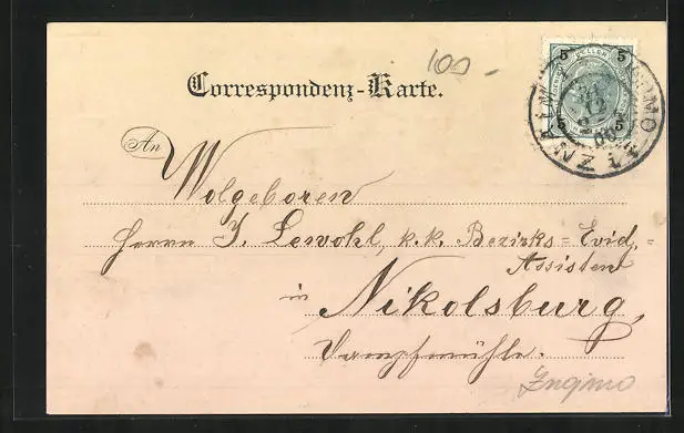 alte Ansichtskarte, gelaufen 1900, Stempelspur, guter Zustand