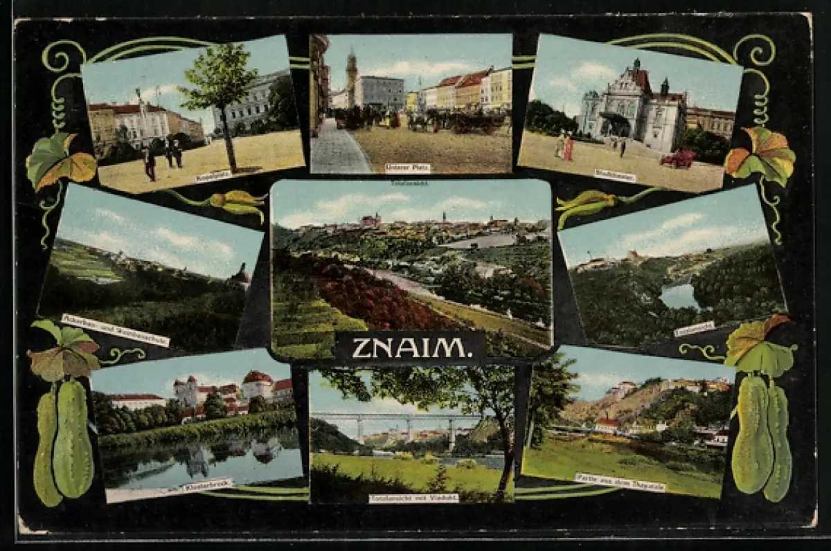 AK Znaim, Stadttheater, Unterer Platz, Kopalplatz