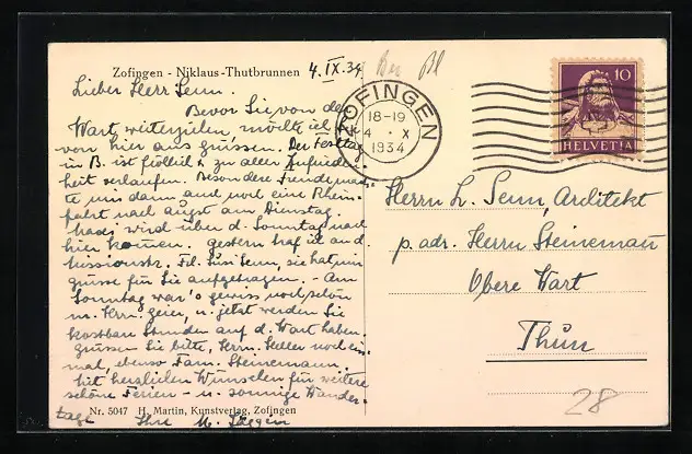 AK Zofingen, Blick zum Niklaus-Thutbrunnen