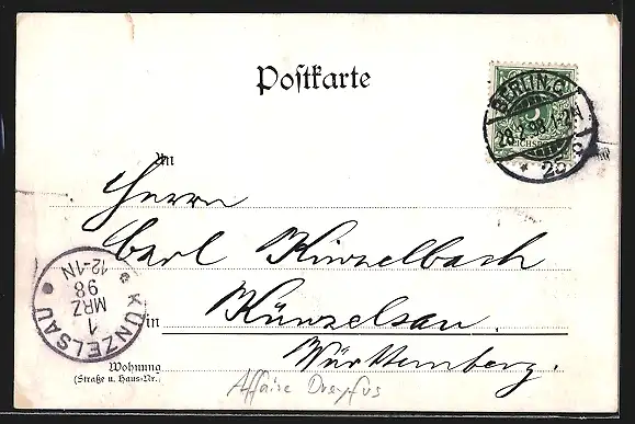alte Ansichtskarte, gelaufen 1898, Einriss re. oben, guter Zustand